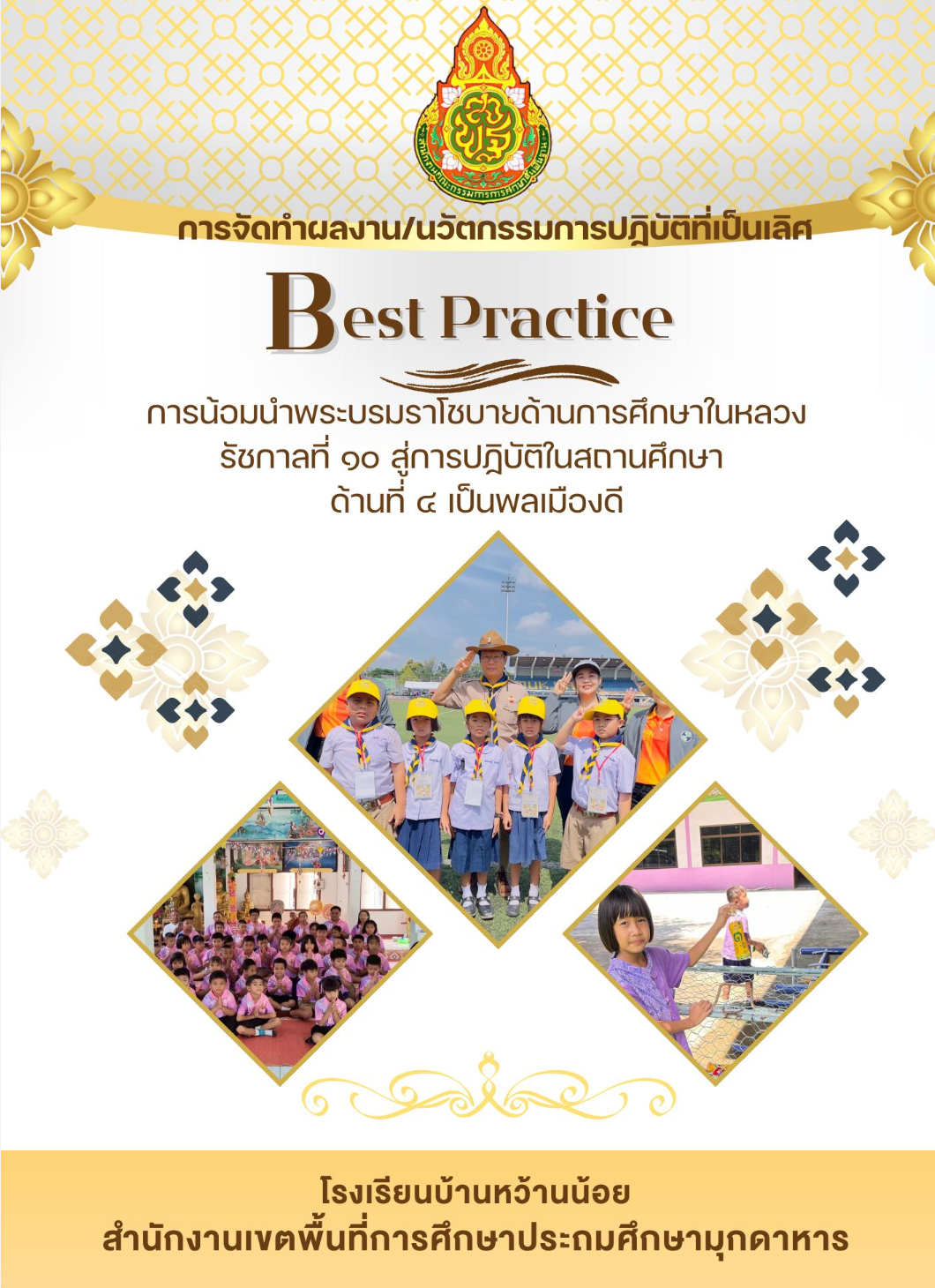 การจัดทำผลงาน นวัตกรรมการปฏิบัติที่เป็นเลิศ การน้อมนำพระบรมโชบายด้านการศึกษาในหลวงรัชกาลที่ 10