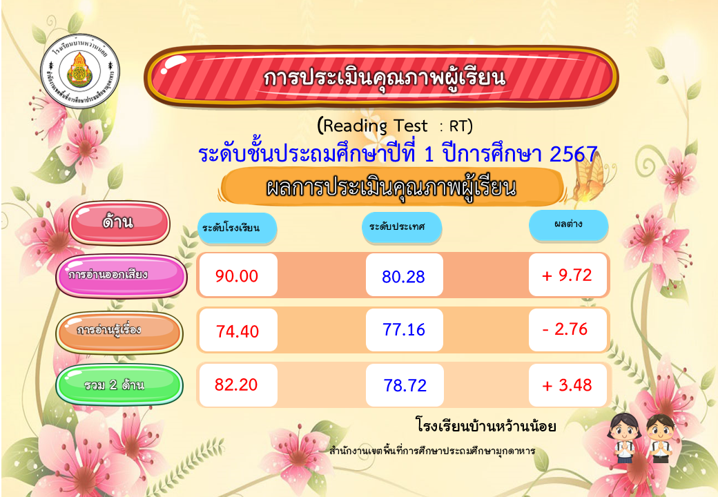 รายงานการประเมินตนเองของสถานศึกษา ระดับการศึกษาขั้นพื้นฐาน